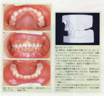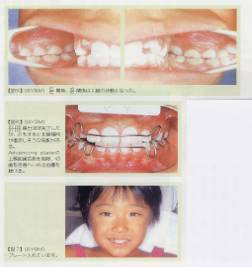 幼児(乳歯)の時からプレートを使って、大人の歯を初めから正しい位置に並べていく、という様子を説明しています。